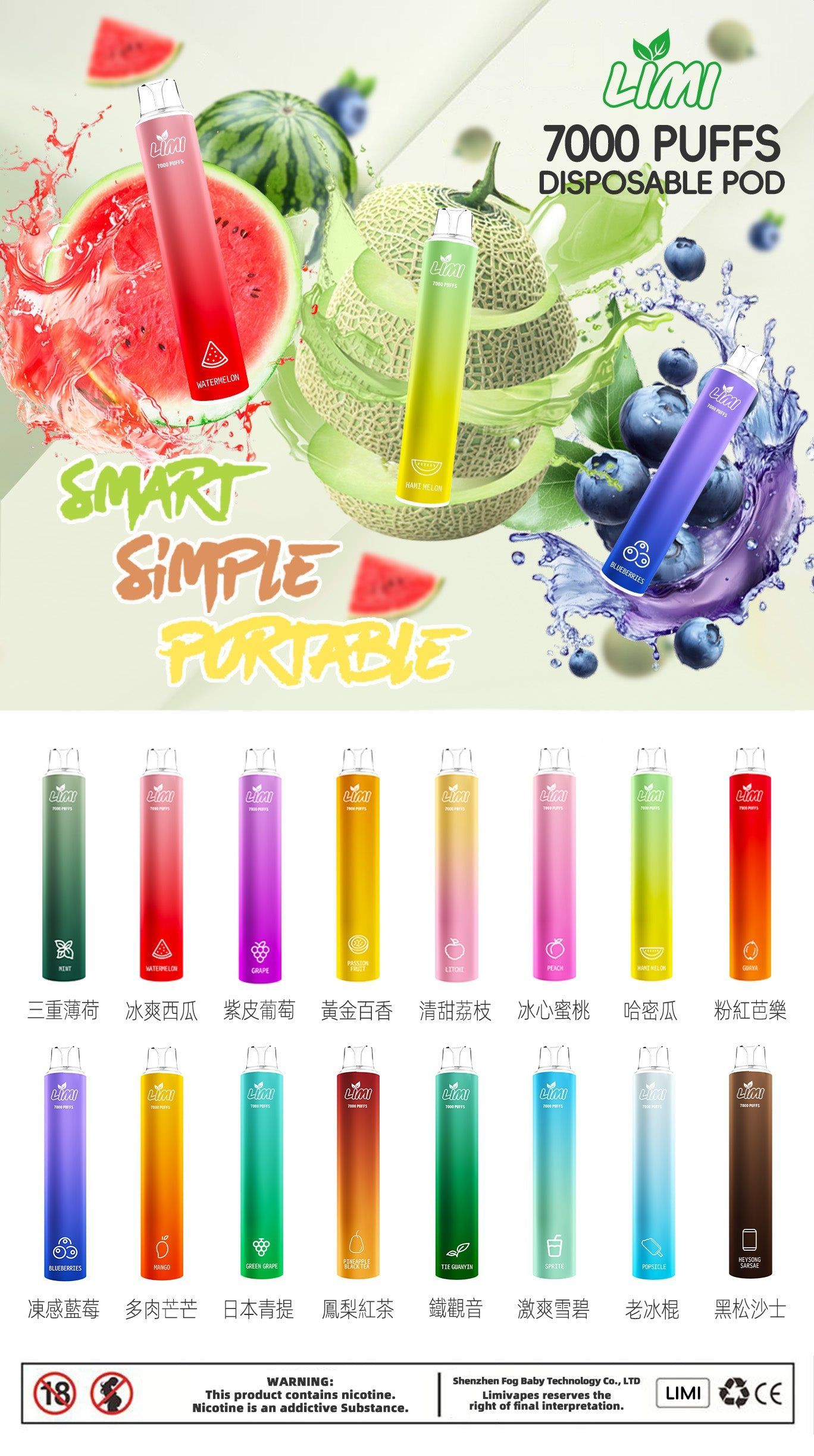 - 安全可靠品質把關:LIMI嚴格遵循國際安全標準,選用食材級煙油原料,搭配高品質霧化芯,並通過CE、RoHS等多項認證,使用更安心。